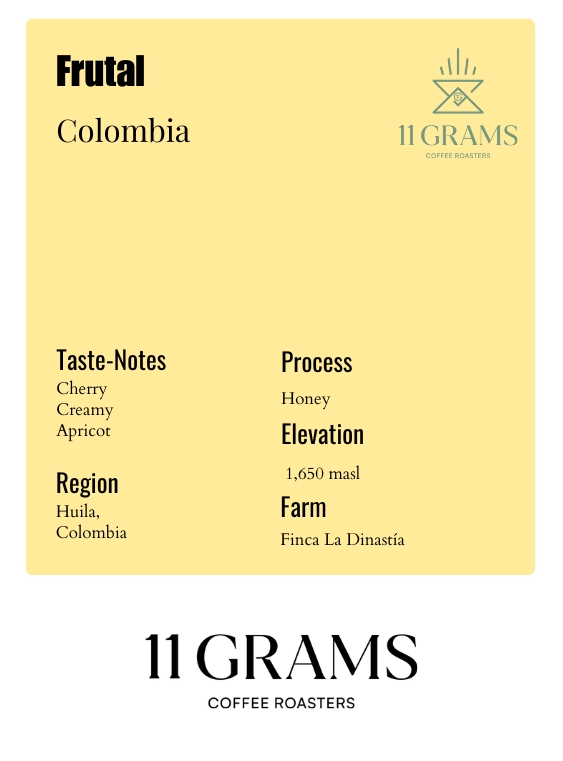 From the famed Finca La Dinastía in the Huila region of Colombia, this honey-processed coffee is grown at 1,650 masl. Frutal offers a smooth, creamy cup with notes of juicy cherry and ripe apricot, finishing with a silky creaminess that adds depth and complexity to every sip.