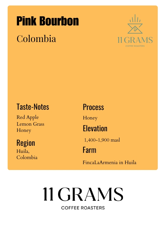 From the lush mountains of Huila, Colombia, this rare Pink Bourbon varietal is cultivated at 1,400–1,900 masl on the renowned Finca La Armenia. Known for its unique genetics and vibrant flavor complexity, Pink Bourbon is prized by specialty coffee connoisseurs worldwide.